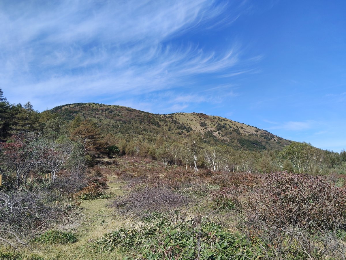 当日は気持ちの良い天気となり、湯ノ丸山もキレイに見えました。山頂付近は少し紅葉していますね。