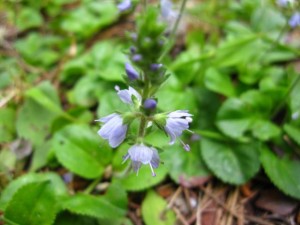 茎は地面をはい、根を下ろして広がる。花は径8mmぐらいで、青紫色です。