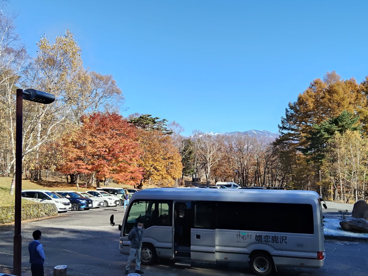 四阿山や草津白根山は冠雪しました。これもまた、紅葉に映える感じで良いですね。(下の写真は休暇村の玄関から撮ったものです。)